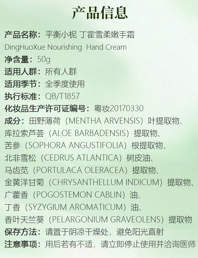 平衡小柅丁霍雪保湿嫩肤柔润护手霜
