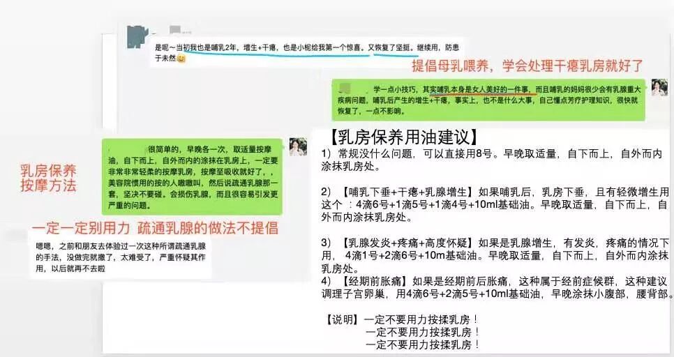 3、如果是乳腺增生,有发炎,疼痛的情况下用, 4滴1号+2滴6号+10m基础油。