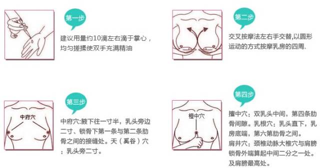 精油配合穴位按摩不但可以调理预防乳腺疾病,还可以达到丰胸的效果(坚挺弹性)。