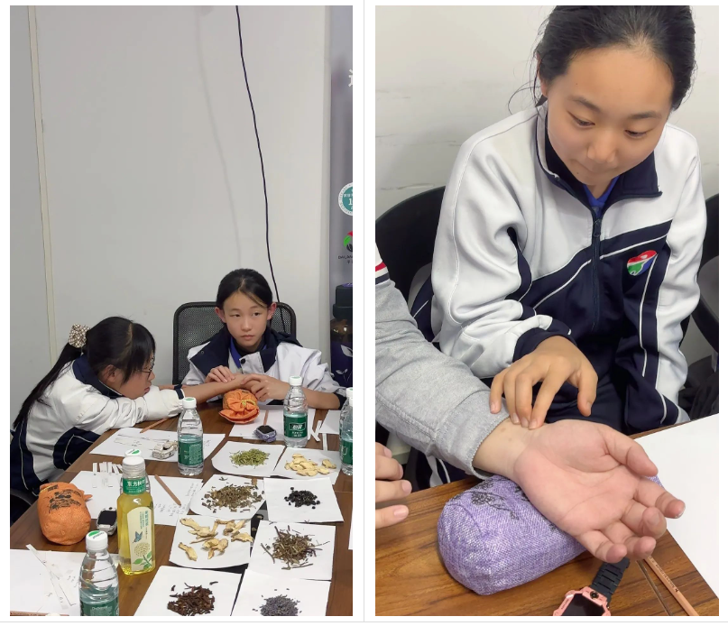 "三指搭脉就像听心跳的密码":当冰凉的中医脉枕触到手腕,初次体验把脉的孩子们屏息凝神。