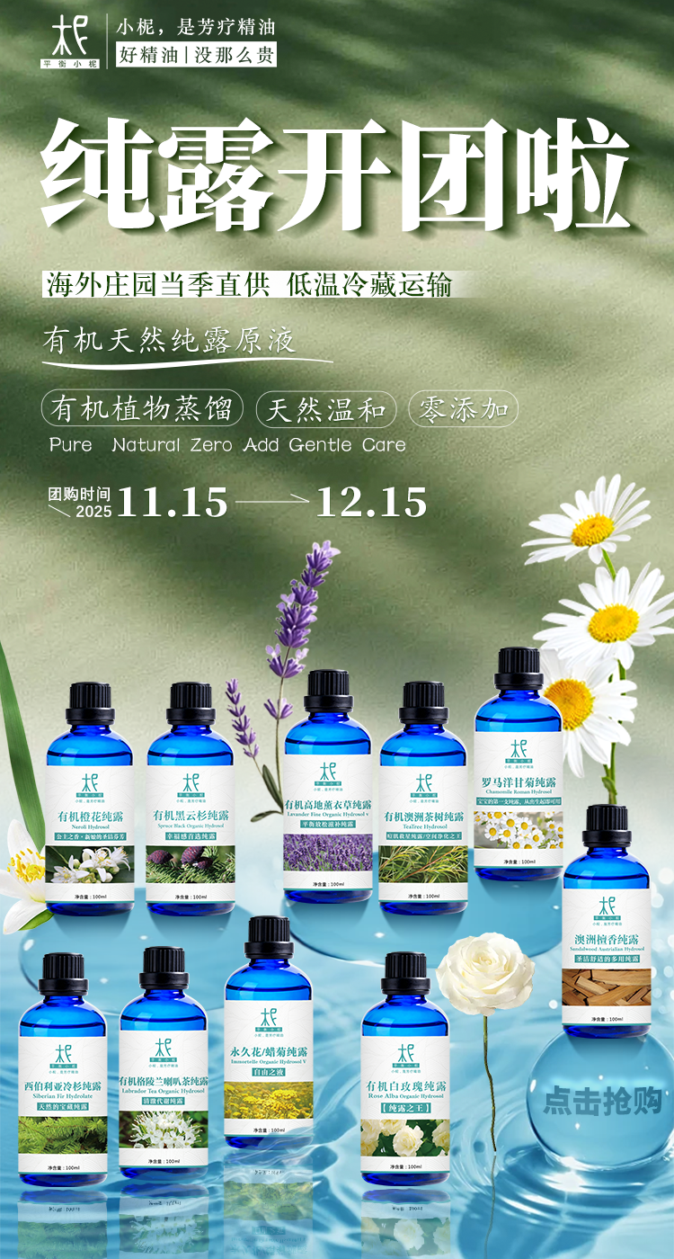 133提及纯露,很多人的第一印象是“补水喷雾”,随手一喷缓解干燥,似乎就是它的全部价值。但对于深耕健康芳疗领域的平衡族而言,纯露是精油的“温柔孪生姐妹”,是大自然赋予肌肤的天然疗愈能量——它不仅能补水,更能基于不同花材的芳疗特性,解决舒缓、维稳、提亮等多种肌肤困扰。